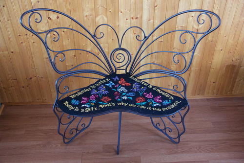 8" x 8" mat, I was hooked. Three months later, I wanted to branch out to a larger project. And I had just the project in mind: the butterfly bench.