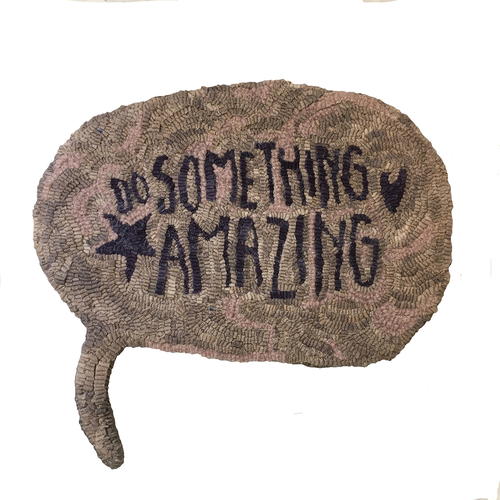 Do Something Amazing Speech Bubble, hooked in multiple cuts of wool. Designed and hooked by Ellen Banker, Williamsburg, Virginia, 2019.