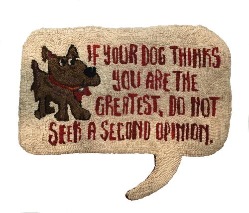 If Your Dog Speech Bubble, 18" x 14", hooked in multiple cuts of wool. Designed and hooked by Ellen Banker, Williamsburg, Virginia, 2019.