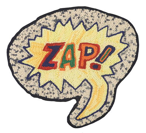 Zap Speech Bubble, 18" x 18", hooked in multiple cuts of wool. Designed and hooked by Debra Smith, Landisburg, Pennsylvania, 2019.