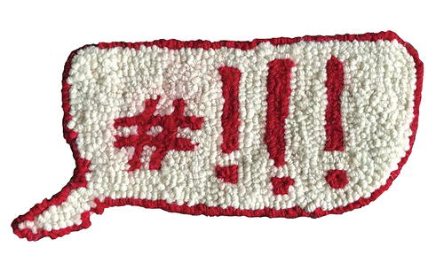 #!! Speech Bubble. Designed and hooked by Barbara Lucas, Ottawa, Ontario, 2019.