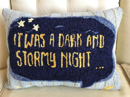 Dark and Stormy Night Speech Bubble. Designed and hooked by Shelly Richardson, Mahone Bay, Nova Scotia, 2019.