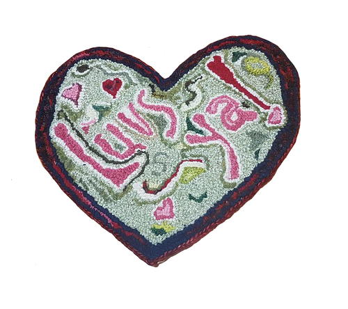 Luvs Ya Speech Bubble. Designed and hooked by Juel Weideman, Saint-Armand, Quebec City, 2019.