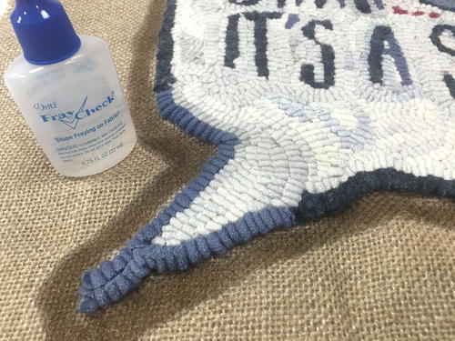 For backgrounds, I also recommend multiple cuts of wool. Even if I plan to hook a #8-cut background, I hook a smaller cut around my letters or objects, sometimes beginning with a #4 cut,