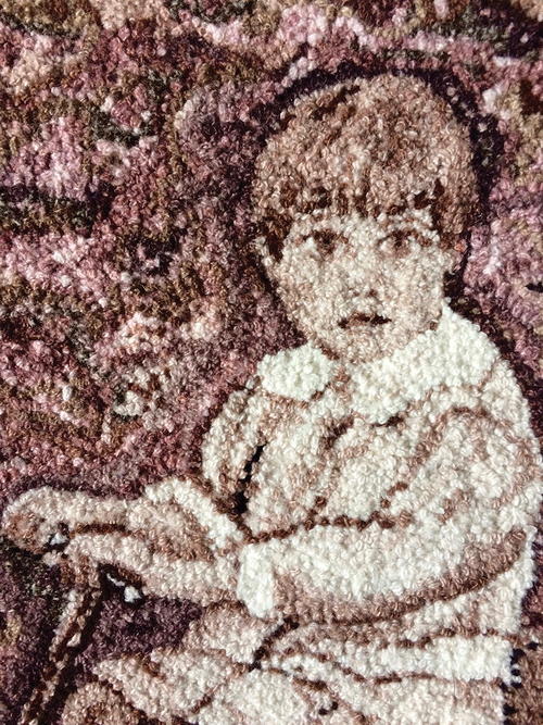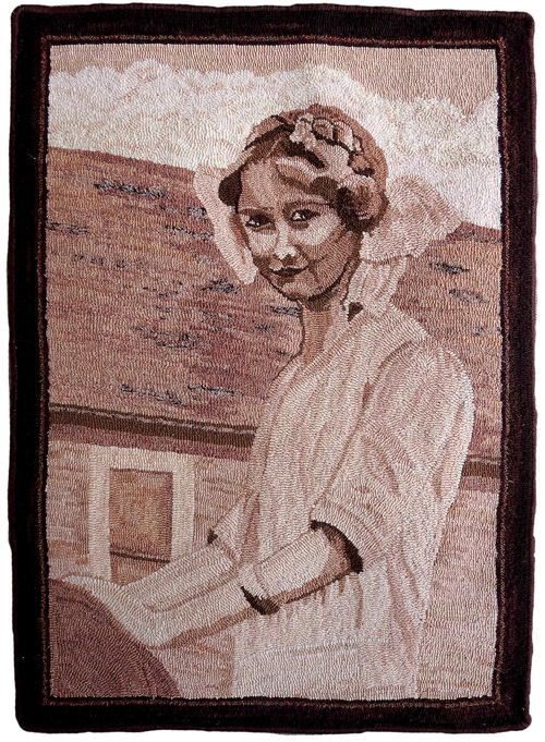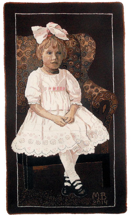 This rug was adapted from an old family photograph of Marilyn’s mother at age five. -