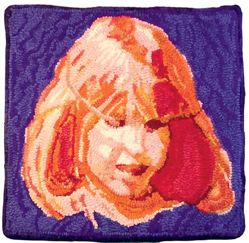 Michelle, 12½" x 12½", #4-, 5-, and 6-cut wool on linen. Designed and hooked by Lou Ann Ayres, Papillion, Nebraska, 2017.
