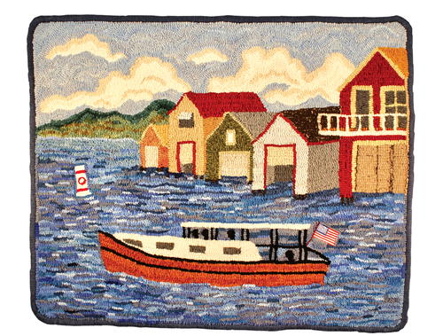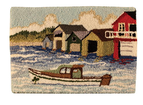“People have been compelled to capture the boat houses in art and photography for over a century. Because I live in Canandaigua, I wanted to hook Molly’s boat house pattern as soon as I saw it.” -
