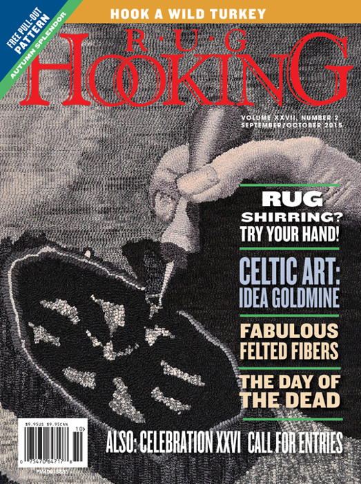 In the September/October 2015 issue of Rug Hooking Magazine, learn how to hook a wild turkey and explore a free pull-out pattern, Autumn Splendor. Plus, travel with us as we explore rugs based off of the Day of the Dead and Celtic art. Try your hand at rug shirring and learn about fabulous felted fibers.