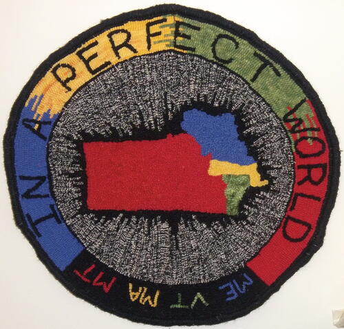 In a Perfect World, 18" diameter, #3-, 4-, and 5-cut wool on monk’s cloth. Designed and hooked by Mariah Krauss, Montpelier, Vermont, 2009.