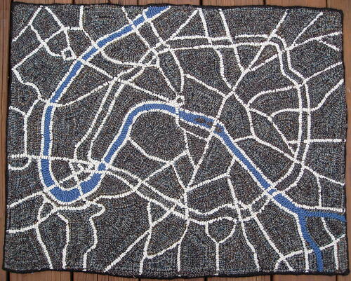 Paris, 29" x 23", #8-cut recycled wool on linen. Mav’e Brittain, Lexington, Kentucky, 2012.