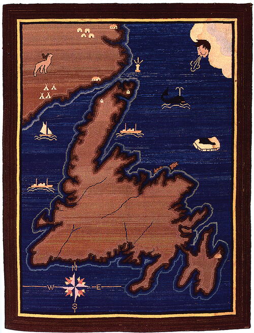 In October 1936, “The Homemaker,” a column in a Toronto newspaper, reported: “Beautiful rugs, incredibly fine and firm, hooked from discarded stockings . . . were on display and for sale. . . We fell into conversation with the nurse on furlough, Miss W. Murdoch, a rosy cheeked Scotch girl, and with her studied the fascinating map Sir Wilfred has made dotting it all over with wigwams, hospitals, nursing stations, schools, ships, great heaving walruses upsetting kayaks, wolves, moose, dog trains, igloos and a score of other objects that tell the story of the work among the people of the bleak Northland.” -