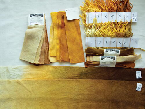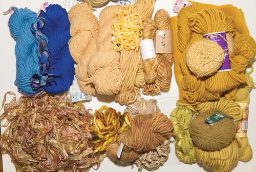 Now look at your yellow and orange stash. Group them by hues and values. Choose a minimum of three hues and maximum of five, including light, medium, and dark values.