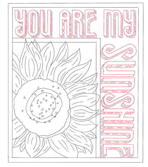 You Are My Sunshine, © Ti Seymour, 2020. For personal use only. For a hooked or punched piece approximately 22" x 25", enlarge by 325%.