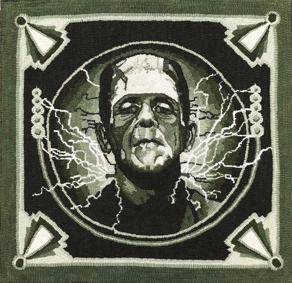 Adapted from a promotional picture of Frankenstein's monster from Boris Karloff's 1935 movie and designed and hooked by Jane Anderson, Clinton, New Jersey, 2018.