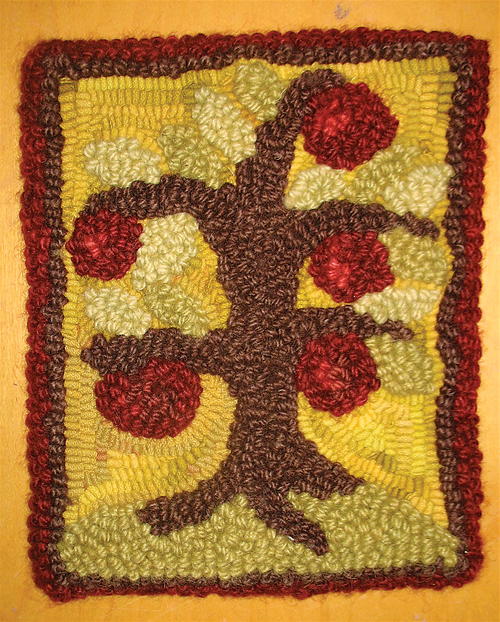 Simple thread mat and apple tree hooked by Maddy Fraioli.