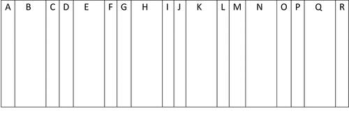 Diagram for Rainbow: 18 adjacent rectangles, each labeled with a letter from A to R. The height of the rectangles is 16".