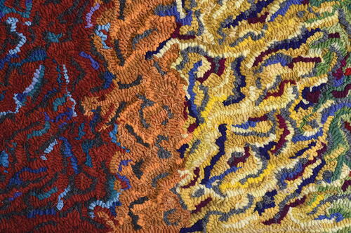 Do you have a stash of wool and cut strips, of any width, that you do not know what to do with? Would you like to create a beautiful rug without having to dye wool? Do you have odds and ends of various sized backing fabrics that just sit in your closet? Would you like to create a beautiful rug that you can admire, as you play about with color theory?