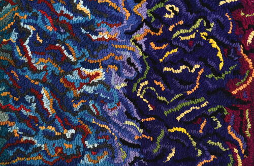 Here is a thought: hook an abstract rainbow. Paul Jackson Pollock was an American abstract expressionist painter known for pouring or dribbling household paint onto canvas laid on a floor. I used his inspiration to create an abstract rug. Rather than use paint, I would use wool strips, and I could incorporate elements of color theory.
