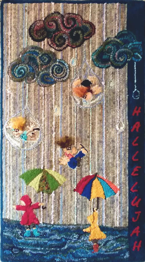 “This is my first completed rug. My dad used to sing this song all the time when we were growing up. He would take us camping or for a day at Bear Lake in Milton, Florida, and sing the song. The song reminds me of my Dad and his carefree ways. He is 74 now and sometimes still breaks out in song just to entertain us.” -