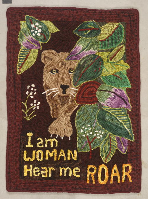 Hear Me Roar, #5- and 6-cut wool on linen. Designed and hooked by Debra Smith, 2019.