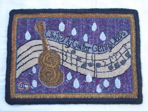 While My Guitar Gently Weeps, 21 ½" x 16", #4- through 7-cut wool on rug warp.