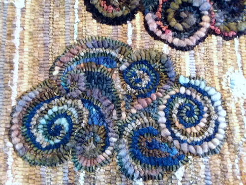 Paula is a member of the Wooly Mason Jar Rug Hooking page on Facebook (curated and started by Lucy Richard). She posted a progress picture on that page.