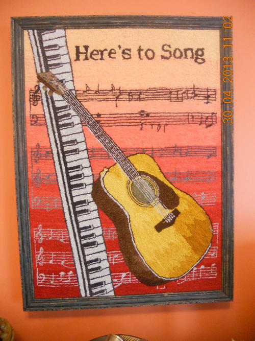 I was one of those clueless people who had missed the whole thing until it was almost over. Once I found out about it, it took me all of ten seconds to post my music piece Here’s to Song. I cheated a bit because it’s a piece I did years ago but I really wanted to be in on the Song Challenge! What fun to see all the pictures and stories behind the rugs.