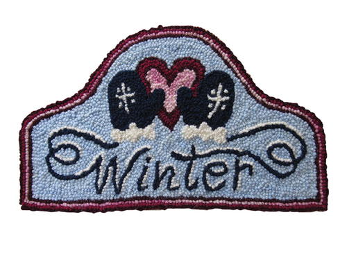 When the holiday hustle and bustle is behind us, we in the northern hemisphere are left with many more long dark nights of winter before us. It can be a special time of contemplation, rest, and renewal. Winter also brings thoughts of crisp snow, cold toes and frozen noses, glistening icicles, and getting warm by a crackling fireside; it’s a time to snuggle up with those we love and to work on our wonderful woolly hooking. A pattern featuring warm mittens and loving hearts is the perfect project.