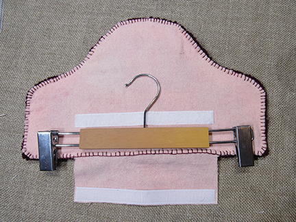 Sew the wool to the hooked piece. Add the pant hanger.