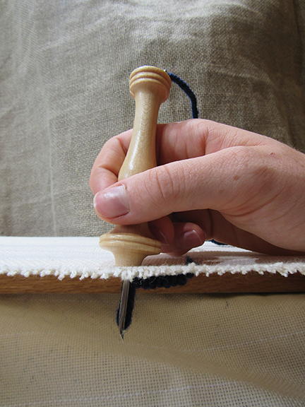 • When you bring your needle back up it should just clear the backing, then drag it along the surface. Don’t lift it above the monk’s cloth or you’ll end up with lumps on the back, and loops that are too short on the front.