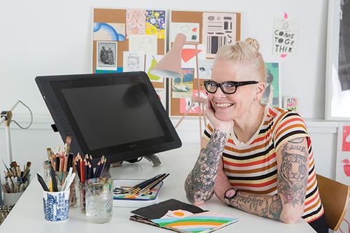 Fine artist, illustrator, and author Lisa Congdon is best known for her colorful paintings and hand lettering. She works for clients around the world including MoMA, REI, Harvard University, Martha Stewart Living, Chronicle Books, and Random House Publishing, among many others. She is the author of seven books. Her latest book, A Glorious Freedom: Older Women Leading