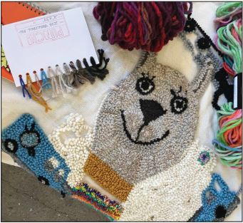 The San Diego Yarn Crawl is an annual event that takes place every September in San Diego, California. The Crawl is a self-guided tour of local yarn shops and alpaca farms, with trunk shows and classes for knitting and crochet. It’s a time to sample new skeins at “yarn tastings” and get free patterns. And for me it was an opportunity to introduce many to the craft of punch needle rug hooking.