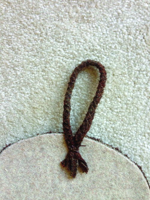 Braid leftover yarn or wool to create a hanger. Attach the hanger to the back of the piece.