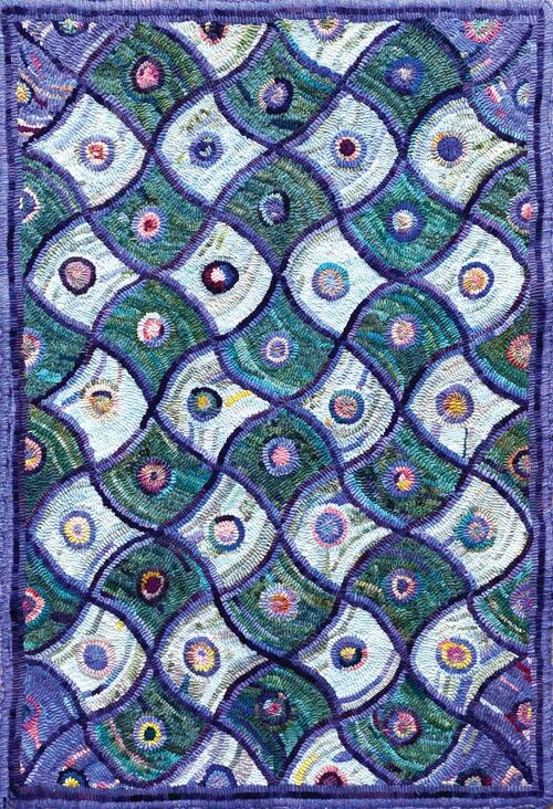 Kathleen Harwood has enjoyed a long and rewarding career in the arts. A member of the Celebration Hall of Fame, she began hooking in 2002. She hooks original designs, primarily geometric studies, animals, and message rugs, and is increasingly drawn to abstraction in the textile arts.