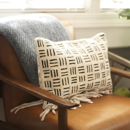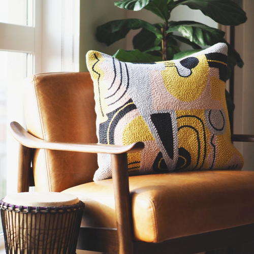 Our textiles are made using a technique called punch needling, a process similar to rug hooking, where traditionally yarn (or any kind of continuous material) is interlocked on a backing fabric to create loops. Caroline is inspired by bold colors and abstract shapes and let's the process inform her designs. All materials are all thoughtfully sourced in the U.S.A.