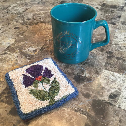 Thistle Mug Mat, mini-punch version of the Fraktur Thistle design.
